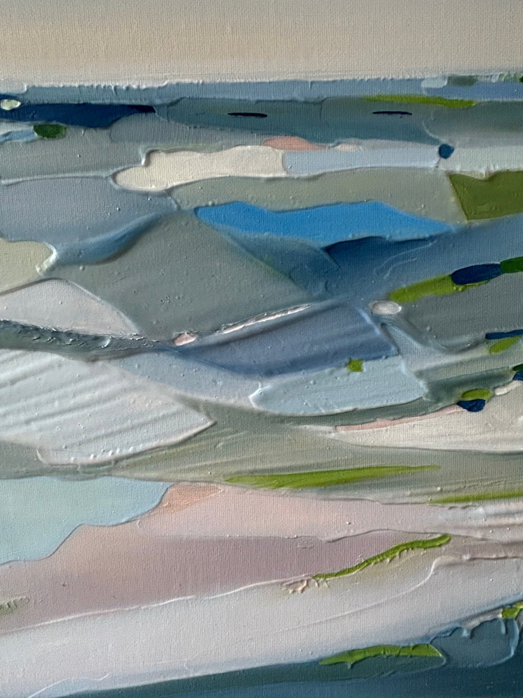 Simon & BredaHaving spent most of my life living on islands, the sea was always a fascination. I could happily sit for hours looking at it, admiring is beauty, it’s strength and the way it is constantly changing. I first met Rikki in 2018 and was invited to visit her studio where I was stunned by her seascapes and her #making100Waves project. When buying a new home in 2019 we really wanted a painting which captured our love of the sea and we didn’t hesitate to commission Rikki. We spent some time working with Rikki to agree the design and size and get her advice. We got regular updates from Rikki and then in spring 2019 she presented us with the finished work. Rikki captured a beautiful moment in a constantly changing seascape. It is stunning and it sits in pride of place in our living room. Nice one Rikki !