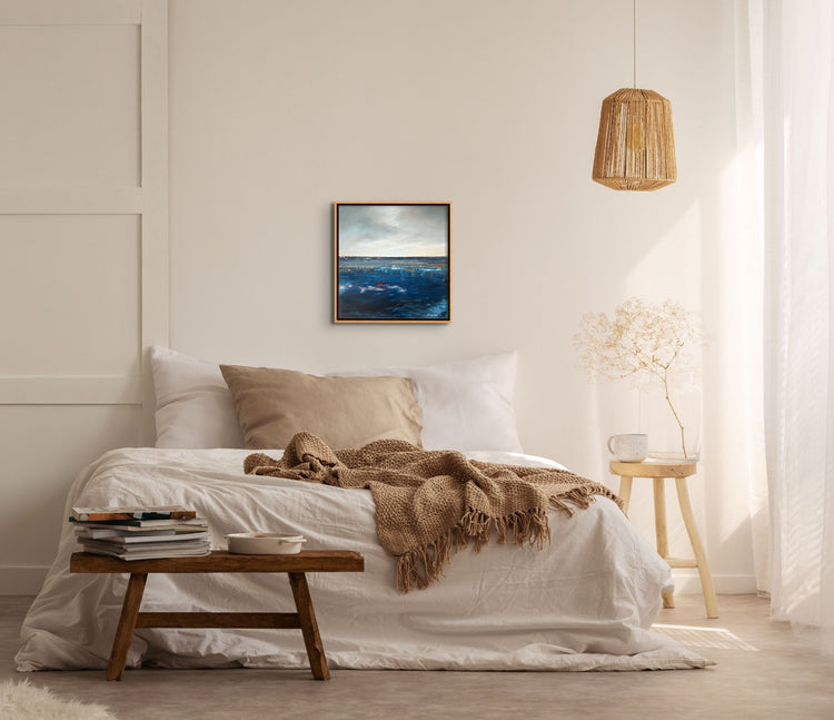 This painting is ready to hang in a wooden floating frame, great on any wall, and will allow you to find peace and calmness.